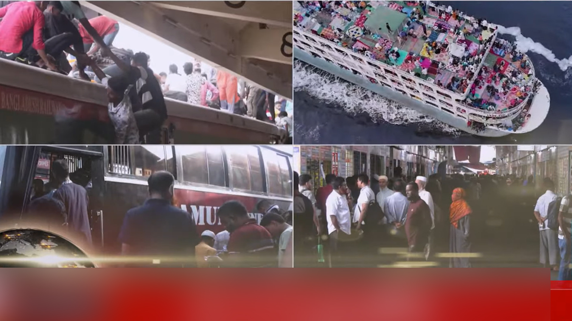 ঈদযাত্রার শেষদিকে রেল, সড়ক ও লঞ্চ টার্মিনালে উপচে পড়া ভিড় দেখা গেছে। তবে নিষেধাজ্ঞা অমান্য করে ট্রেনের ছাদেই বাড়ির পথে যাত্রা চলছে।বুধবার (১৮ মার্চ) সকাল থেকেই কমলাপুর রেলওয়ে স্টেশনে যাত্রীদের উপচে পড়া ভিড় লক্ষ্য করা গেছে। পরিবারের সঙ্গে ঈদ আনন্দ ভাগাভাগি করতে ভোর থেকেই বাড়তি চাপ প্রতিটি ট্রেনেই রয়েছে। উত্তরবঙ্গের সব ট্রেনেই দেখা গেছে উপচে পড়া ভিড়। ট্রেনের ছাদে জানালায় ঝুলে বাড়িরপথে যাত্রা করছেন অনেকেই। এসব ট্রেনে জায়গা না পেয়ে রেলের নিষেধাজ্ঞা অমান্য করেই ছাদে উঠছেন বাড়ি যেতে বেপরোয়া যাত্রীরা। তবে পূর্বাঞ্চলের ট্রেনগুলো ছিলো বেশ ফাঁকা। এদিন কমলাপুর রেলওয়ে স্টেশন থেকে শিডিউল মেনে যথাসময়েই ছেড়ে গেছে সব কটি ট্রেন। ট্রেনে ভিড় থাকলেও, শিডিউল বিপর্যয় না হওয়ায় স্বস্তির কথা জানান যাত্রীরা। এদিকে সড়কপথে এবারের ঈদ যাত্রায় তুলনামূলক স্বস্তির চিত্র দেখা গেছে। আরও পড়ুন: মধ্যপ্রাচ্যে সংঘাত: হজযাত্রার ফ্লাইট সূচিতে প্রভাব পড়ার শঙ্কা! রাজধানীর বিভিন্ন বাস টার্মিনাল থেকে নির্ধারিত সময়েই ছেড়ে যাচ্ছে দূরপাল্লার যানবাহন। যদিও টিকিট সংগ্রহ নিয়ে কিছু অভিযোগ থাকলেও ভোগান্তি ছাড়া পরিবারের সঙ্গে বাড়ির পথে রওনা হতে পেরে খুশি যাত্রীরা। ঢাকা-টাঙ্গাইল মহাসড়কের কিছু অংশে যানজট দেখা গেলেও অন্যান্য বারের মত উত্তরাঞ্চলমুখী সড়কগুলোতে বড় ধরনের যানজটের খবর পাওয়া যায়নি। এছাড়াও সকাল থেকে ভিড় বাড়ছে সদরঘাট লঞ্চ টার্মিনালে। সকাল ৯টা পর্যন্ত ২২টি লঞ্চ দেশের বিভিন্ন গন্তব্যে ছেড়ে গেছে। ঘাটে ভোলা ও চাঁদপুর রুটের লঞ্চে যাত্রী বেশি ছিল। দক্ষিণাঞ্চলের বরিশালে সড়ক পথে ভিড় বেশি থাকায় লঞ্চের যাত্রী চাপ কম। তাই স্বস্তিতে বাড়ি ফিরছেন যাত্রীরা। কম খরচে আরামদায়ক ভ্রমণের জন্য লঞ্চেই পরিবার নিয়ে বাড়ি যাচ্ছেন। অনেকে বাসের আগাম টিকিট না পাওয়ায় ঝক্কিঝামেলা এড়াতে সময় নিয়ে নৌপথে যাত্রা করছেন। মঙ্গলবার (১৭ মার্চ) ৩৭টি রুটে ১০২টি লঞ্চ সদরঘাট থেকে ছেড়ে গেছে। আজও দিনভর বিভিন্ন রুটে ছেড়ে যাবে। সদরঘাট ছাড়াও এবার প্রথমবারের মতো বসিলা ও রুপগঞ্জের শিমুলীয়া ঘাট থেকে বেশ কয়েকটি লঞ্চ ছেড়ে যাবে। বাড়তি ভাড়া ও অতিরিক্ত যাত্রী পরিবহনের তদারকিতে বিআইডব্লিউটিএ ও আইনশৃঙ্খলা বাহিনী কাজ করছে।