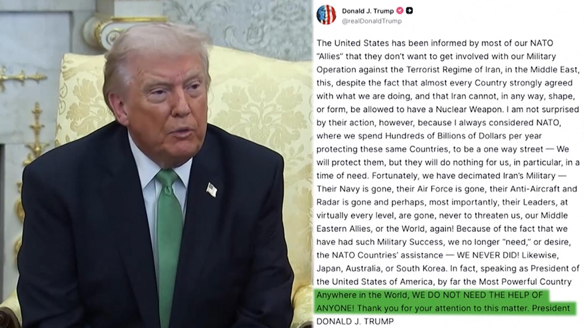 [ 앵커 ] 이란 전쟁이 3주차에 접어든 가운데 도널드 트럼프 미국 대통령이 진퇴양난에 빠진 모습입니다. 우방의 외면과 내부 균열 속에 이제는 주도권이 이란에 넘어갔다는 분석도 나오고 있습니다. 강은나래 기자입니다. [ 기자 ] "누구의 도움도 필요 없다"는 공언은 트럼프의 난처한 처지를 역설적으로 보여줍니다. 독일과 프랑스, 캐나다, 호주 등 핵심 우방들이 호르무즈 해협 파병 요구를 공개 거부했고, 영국 역시 즉각적인 개입에는 선을 그었...