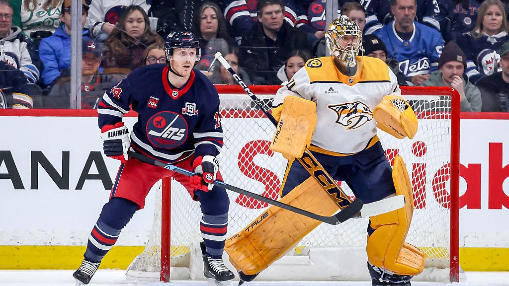 Juuse Saros torjui 36 kertaa Nashvillen voitossa Winnipegistä. Erik Haula osui ylivoimalla.