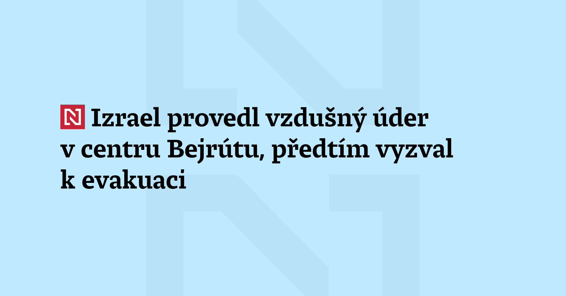 Izrael provedl vzdušný úder ve čtvrti Bašúra v centru libanonské metropole Bejrútu. Izraelská armáda krátce předtím vyzvala obyvatele k evakuaci budovy. Dřívější izraelský úder v Bejrútu podle libanonského ministerstva zdravotnictví zabil nejméně šest lidí a dalších 24 zranil. Izraelská armáda zároveň uvedla, že zahájila nové údery na militantní hnutí Hizballáh na jihu Libanonu. (ČTK)