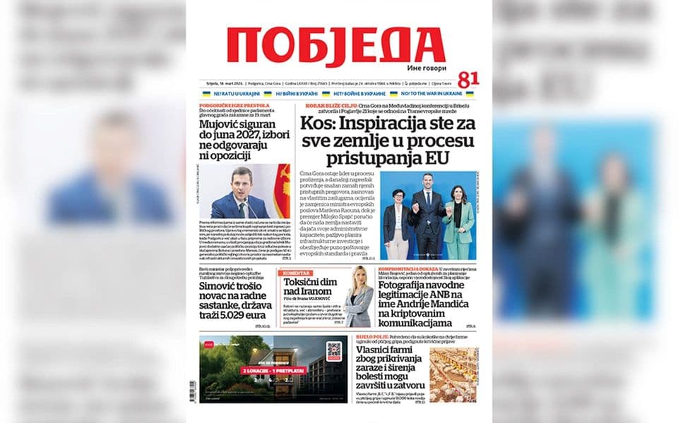 Naslovnica “Pobjede” 18. mart 2026.