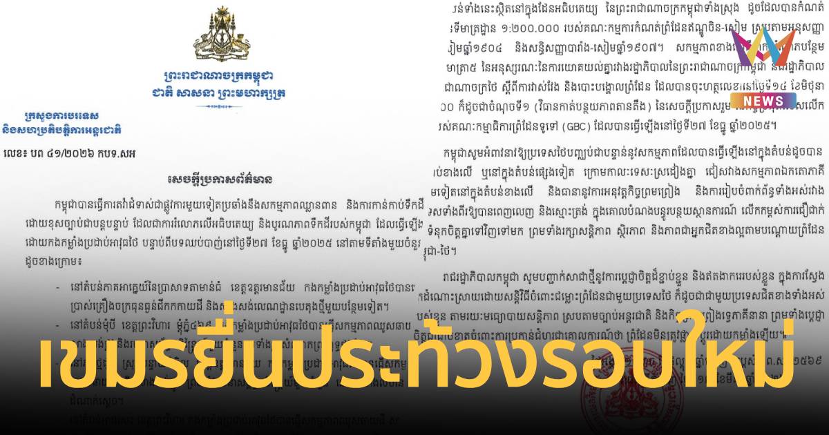 กัมพูชายื่นประท้วงไทยรอบใหม่ อ้างรุกคืบพื้นที่ทับซ้อน-สร้างสิ่งปลูกสร้างถาวรหลังหยุดยิง