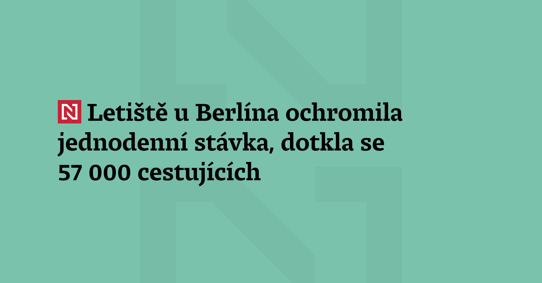 Provoz na mezinárodním letišti Berlín-Braniborsko (BER) u německé metropole ochromila jednodenní stávka. Zrušeno kvůli ní bylo 445 letů pro 57 000 cestujících. Odborový svaz Verdi chce výstražnou stávkou přimět vedení letiště, aby předložilo lepší nabídku v jednáních o platech. Svaz zastupuje zhruba 2000 zaměstnanců letiště. S Prahou berlínské letiště pravidelné spojení nemá. (ČTK)