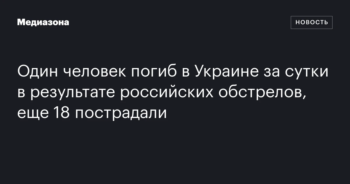Один человек погиб в Украине за сутки в результате российских обстрелов, еще 18 пострадали