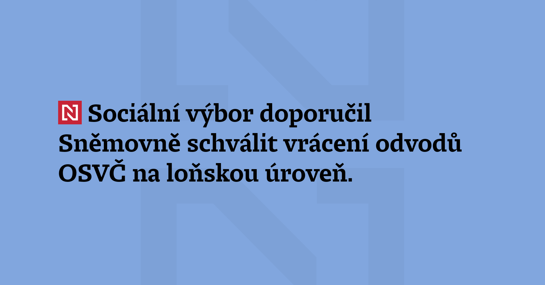Sociální výbor doporučil Sněmovně schválit vrácení odvodů OSVČ na loňskou úroveň. Podpořil jen změnu u vyřizování přeplatků. Opoziční návrhy neuspěly. (ČTK)