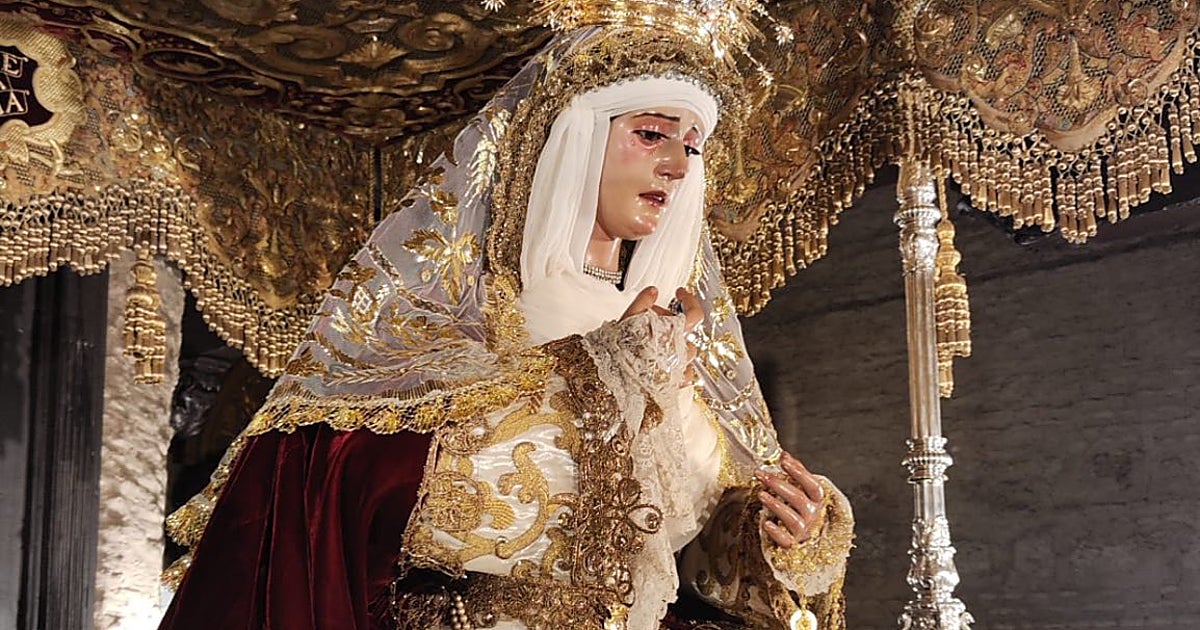 San Esteban recrea una estampa histórica de la Virgen de los Desamparados en el paso de palio con un manto liso burdeos teniendo otro bordado por las hermanas hace más de una década y que ha portado en el besamanos del pasado fin de semana. Según la corporación, «continuando la línea marcada en los últimos cambios, vemos a la Virgen recreando los primeros documentos gráficos conocidos, por eso se muestra con su característico manto antiguo de salida, siendo este un terciopelo de seda de Lyon» . Han añadido que «hay una peculiaridad que es la de recuperar sus originales agremanes con los que fue bendecida la imagen en el hospital de las Cinco Llagas». También, vuelve a lucir en su... Ver Más