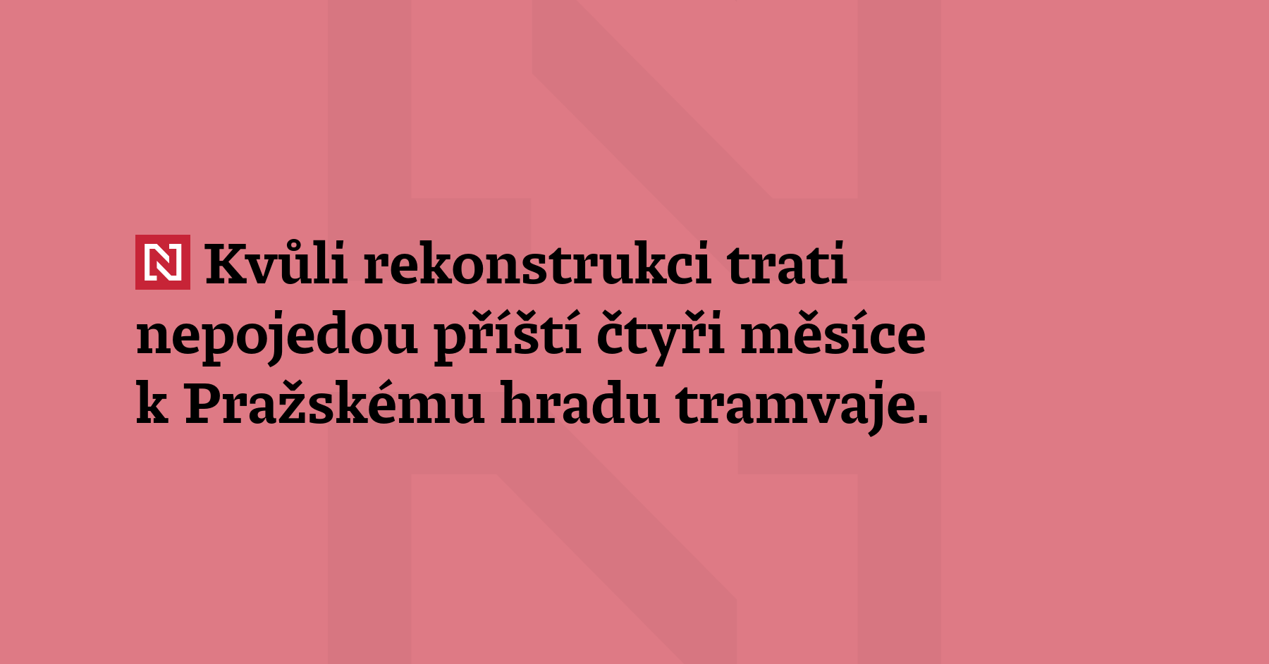 Kvůli rekonstrukci trati nepojedou příští čtyři měsíce k Pražskému hradu tramvaje. Výluka začne v sobotu 21. března a potrvá do 17. července, tramvajové linky budou jezdit odklonem. (DPP)