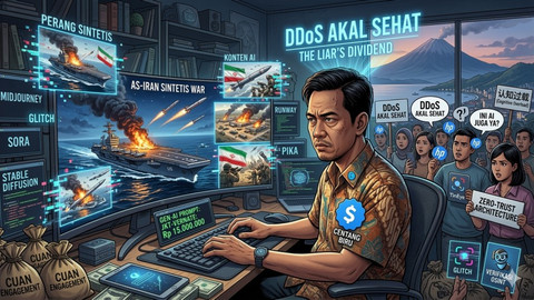 Saat ledakan rudal dan kapal induk tenggelam bisa diproduksi algoritma dalam 5 detik, kebenaran mati tercekik hoaks. Selamat datang di era Perang Sintetis.