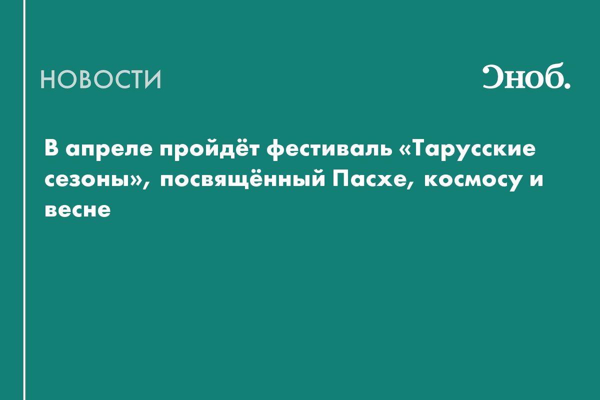 С 11 по 12 апреля в Тарусе состоится очередной сезон фестиваля «Тарусские сезоны». На нём представят новый номер журнала «Сноб».