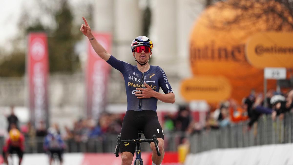 Trionfa il britannico nel gran finale davanti alla Basilica di Superga. Quarto Pelizzari. Ora sabato la Milano-Sanremo