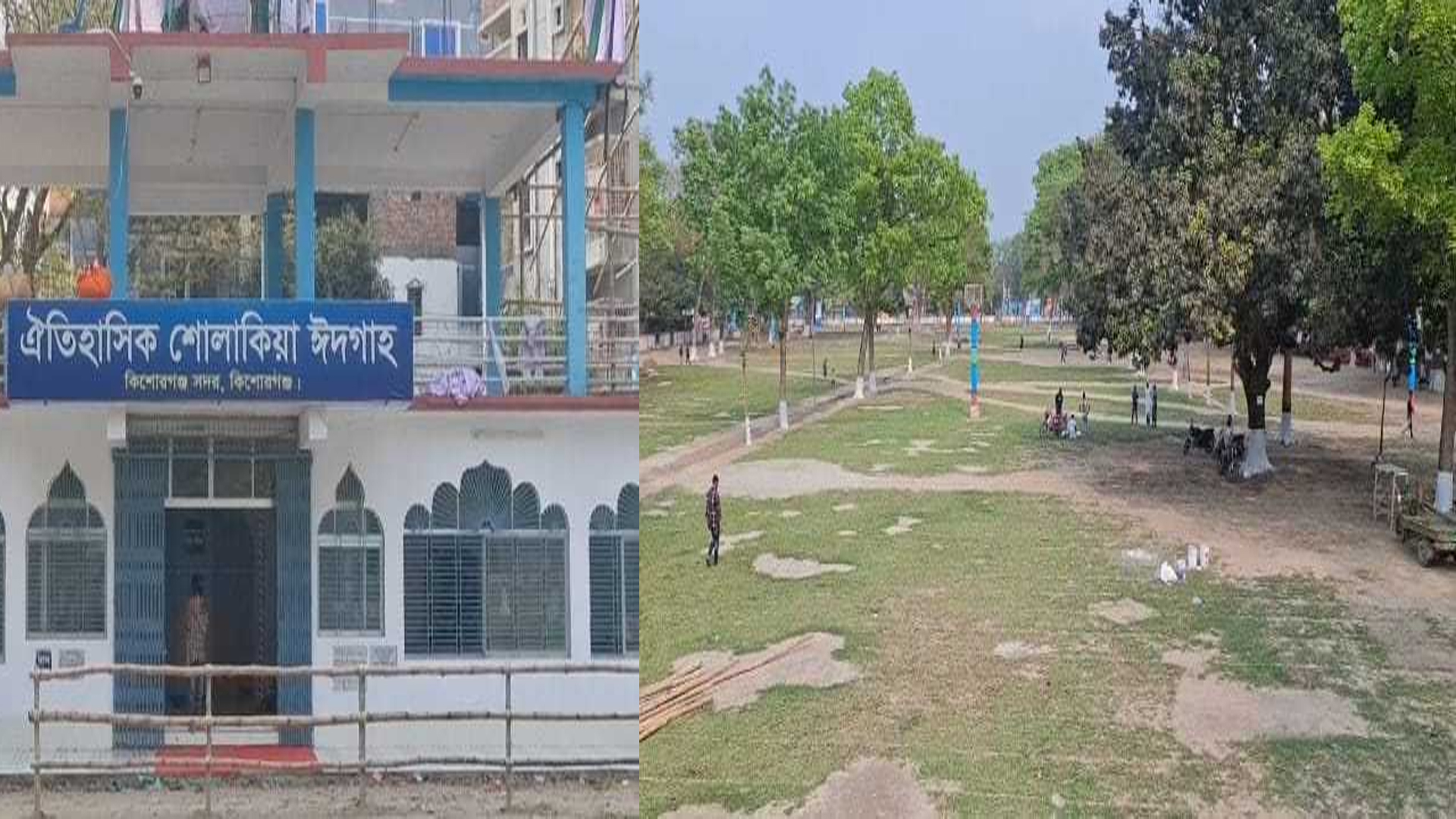 দেশের বৃহত্তম ঈদের জামাতের জন্য প্রস্তুত কিশোরগঞ্জের ঐতিহাসিক শোলাকিয়া ঈদগাহ ময়দান। দেশের সবচেয়ে প্রাচীন ও ঐতিহ্যবাহী এই ঈদগাহে এবার অনুষ্ঠিত হচ্ছে ঈদুল ফিতরের ১৯৯ তম ঈদ উল ফিতরের বড় জামায়া।শোলাকিয়ায় জামাত শুরু হবে সকাল ১০টায়। এতে ইমামতি করবেন মাওলানা মুফতি আবুল খায়ের মো. ছাইফুল্লাহ।এদিকে দেশের সবচেয়ে বড় এই ঈদ জামাতকে কেন্দ্র করে প্রশাসনের পক্ষ থেকে নেয়া হয়েছে নিশ্চিদ্র নিরাপত্তা ব্যবস্থা। চার স্তরের নিরাপত্তা বলয়ে র্যাব, পুলিশ, সেনাবাহিনী, আনসার ছাড়াও থাকছে ৫ প্লাটুন বিজিবি। থাকবে পর্যাপ্ত সিসি ক্যামেরা, ড্রোন ক্যামেরা ও বোম ডিসপোজাল ইউনিট।দূরদূরান্ত থেকে আসা মুসল্লিদের জন্য বিশেষ ট্রেনও ব্যবস্থা করা হয়েছে। ভৈরব থেকে সকাল ৬টায়, ময়মনসিংহ থেকে ভোর ৫:৪৫টায় দুটি স্পেশাল ট্রেন শোলাকিয়ার উদ্দেশে ছেড়ে যাবে। ঈদ জামাত শেষে দুপুর ১২টায় ফিরতি যাত্রা করবে ট্রেন দুটি। এরই মধ্যে মাঠের নিয়ন্ত্রণ নিয়েছে আইনশৃঙ্খলা বাহিনী। সার্বিক নিরাপত্তা ব্যবস্থা সরেজমিন দেখতে বুধবার সকালে শোলাকিয়া ঈদগাহ ময়দান পরিদর্শন করেছেন জেলা প্রশাসক ও পুলিশ সুপারসহ প্রশাসনের উর্ধ্বতন কর্মকর্তারা। এ সময় তারা সাংবাদিকদের কাছে নিরাপত্তা ব্যবস্থা তুলে ধরেন।আরও পড়ুন: শোলাকিয়ার ঈদ জামাত সকাল ১০টায়কিশোরগঞ্জের পুলিশ সুপার ড. এস এম ফরহাদ হোসেন জানান, মাঠে প্রবেশের আগে মুসল্লিদের চারটি নিরাপত্তা চৌকি পার হতে হবে। প্রতিটি প্রবেশ পথে মেটাল ডিটেক্টর দিয়ে দেহ তল্লাশির পর আর্চ ওয়ের ভেতর দিয়ে মুসল্লিদের মাঠে প্রবেশ করতে হবে। ৬৪টি ক্যামেরা, ৭টি ড্রোন ও ৭টি লাইভ ক্যামেরায় মনিটর করা হবে মাঠের ভেতর ও চারপাশ। ঈদগাহের চারপাশে ৪টি ওয়াচ টাওয়ার বসানো হয়েছে। প্রস্তুত থাকবে র্যা বের স্নাইপার ও বোম ডিসপোজাল ইউনিট।তিনি জানান, ১,১০০ পুলিশ, ৪ প্লাটুন সেনাবাহিনী, ৬টি র্যাব টিম, ৫ প্লাটুন বিজিবি ও আনসার মোতায়েন থাকবে। পুরো এলাকা সিসিটিভি ক্যামেরা, ৬টি ওয়াচ টাওয়ার এবং ড্রোনের মাধ্যমে নজরদারিতে থাকবে। মুসল্লিরা কেবল জায়নামাজ বহন করতে পারবেন; ব্যাগ বা অন্য জিনিস বহন নিষিদ্ধ। ঈদগাহ পরিচালনা কমিটির সভাপতি ও কিশোরগঞ্জের জেলা প্রশাসক মোহাম্মদ আসলাম মোল্লা জানান, মুসল্লিরা যাতে নিশ্চিদ্র নিরাপত্তা ব্যবস্থায় মাঠে নামাজ পড়ে নিরাপদে বাড়ি ফিরতে পারেন সে জন্য সকল ব্যবস্থা নেয়া হয়েছে।কিশোরগঞ্জ শহরের পূর্ব প্রান্তে নরসুন্দা নদীর তীর ঘেষে ঐতিহাসিক শোলাকিয়া ঈদগাহের অবস্থান। প্রতিবছর ঈদের নামাজে মুসল্লিদের ঢল নামে এই ময়দানে। এবার ১৯৯ তম ঈদ জামাতের জন্য এরই মধ্যে শেষ হয়েছে সব প্রস্তুতি।মাঠের লাইন টানা, রং করা, আজুখানা মেরামত করা হয়েছে। এখন চ