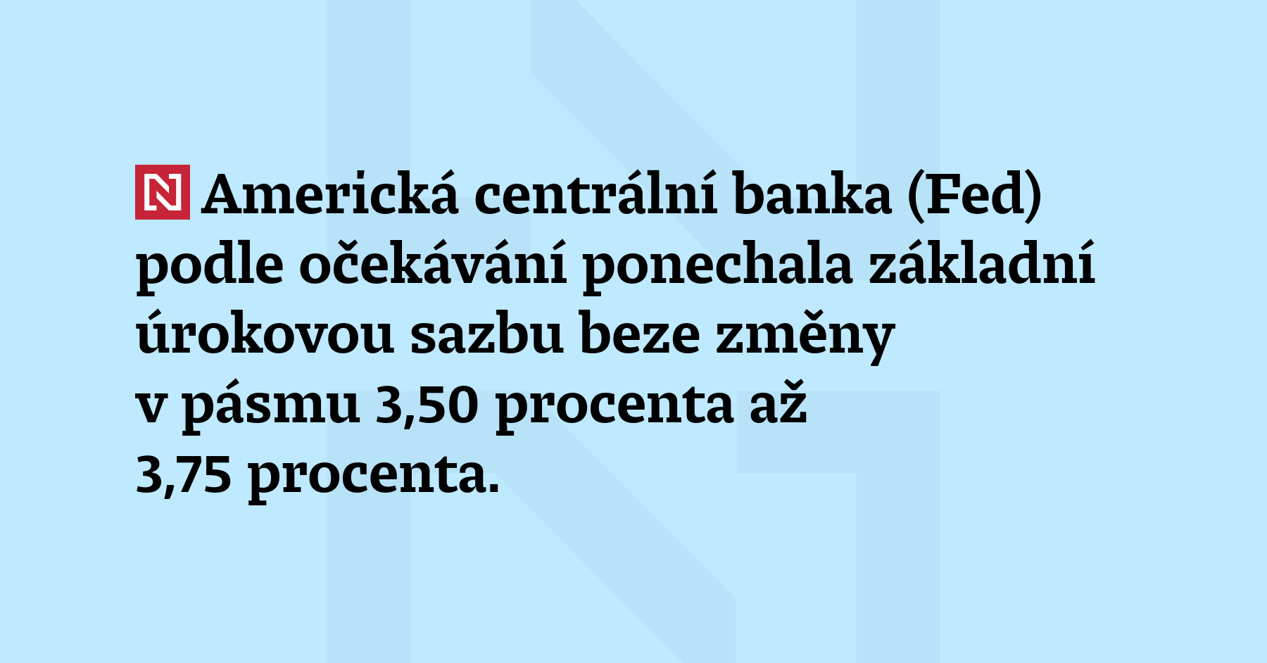 Americká centrální banka (Fed) podle očekávání ponechala základní úrokovou sazbu beze změny v pásmu 3,50 procenta až 3,75 procenta. Inflace podle centrálních bankéřů nadále zůstává zvýšená, nárůst počtu pracovních míst nízký a míra nezaměstnanosti se v posledních měsících téměř nezměnila. Pro ponechání sazeb hlasovalo 11 z 12 členů měnového výboru. Jeden z guvernérů Stephen Miran se vyslovil pro snížení sazeb o čtvrt procentního bodu. (Fed, […]