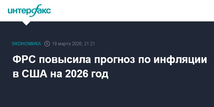 Федеральная резервная система (ФРС) повысила прогноз по инфляции в США (индекс PCE) на 2026 год до 2,7% с ожидавшихся в декабре 2,4%.