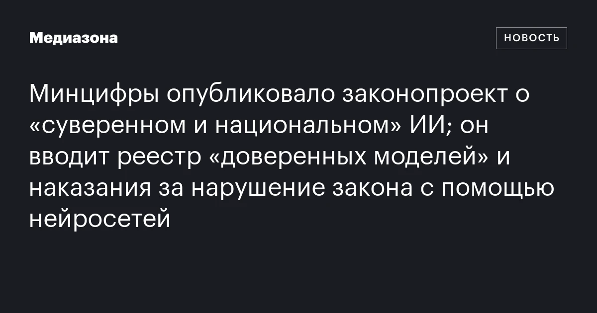 Минцифры опубликовало законопроект о «суверенном и национальном» ИИ; он вводит реестр «доверенных моделей» и наказания за нарушение закона с помощью нейросетей