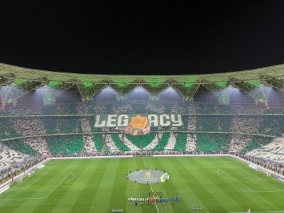 أشعل جمهور الأهلي أجواء الكلاسيكو أمام الهلال مبكرًا بـ "تيفو" رائع زاد من أجواء الزخم والإثارة في أرجاء ملعب الإنماء الذي يحتضن المواجهة.ورفعت جماهير الأهلي تيفو مميز زينته كلمة "...