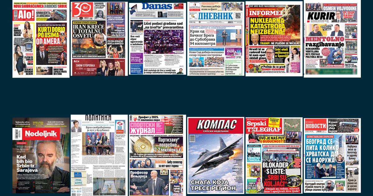NASLOVNE STRANE SUTRAŠNJIH NOVINA: Prelistavanje štampe za četvrtak, 19. mart 2026. godine