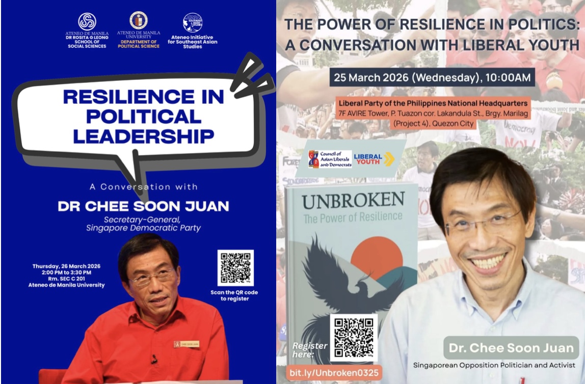 Chee Soon Juan to speak on resilience and politics to Philippine youth