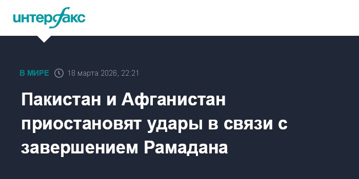 Пакистан и Афганистан объявили о временном прекращении огня на фоне праздника Ид аль-Фитр, а также по просьбе мусульманских стран, сообщает в среду пакистанский портал Dawn.
