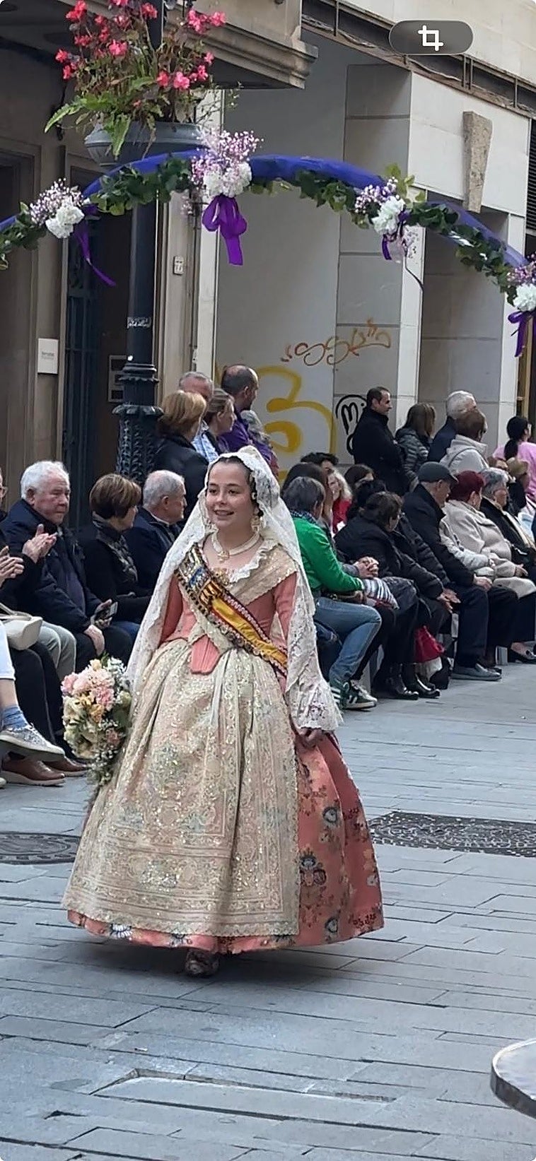 La niña participa alegre y emocionada en la Ofrenda a la Virgen