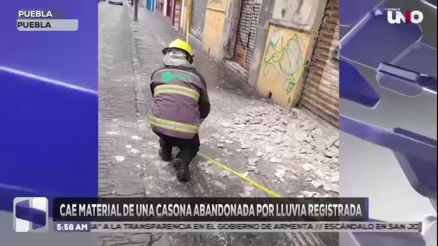 Las lluvias recientes provocaron la caída de material en una casona abandonada del Centro, generando riesgo en la zona entre 8 Oriente, 5 de Mayo y 2 Norte