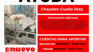 EL NUEVO DIARIO, SANTIAGO.– La familia de Cheyden Cuello Díaz, un niño de 11 años, solicitó apoyo económico para cubrir los gastos médicos generados tras su ingreso en la Clínica Universitaria Unión Médica del Norte, en Santiago, donde permaneció en la Unidad de Cuidados Intensivos (UCI). Según informaron sus familiares, el menor nació con problemas […] La entrada Familia solicita ayuda para cubrir gastos médicos de niño ingresado en clínica de Santiago se publicó primero en El Nuevo Diario (República Dominicana) .