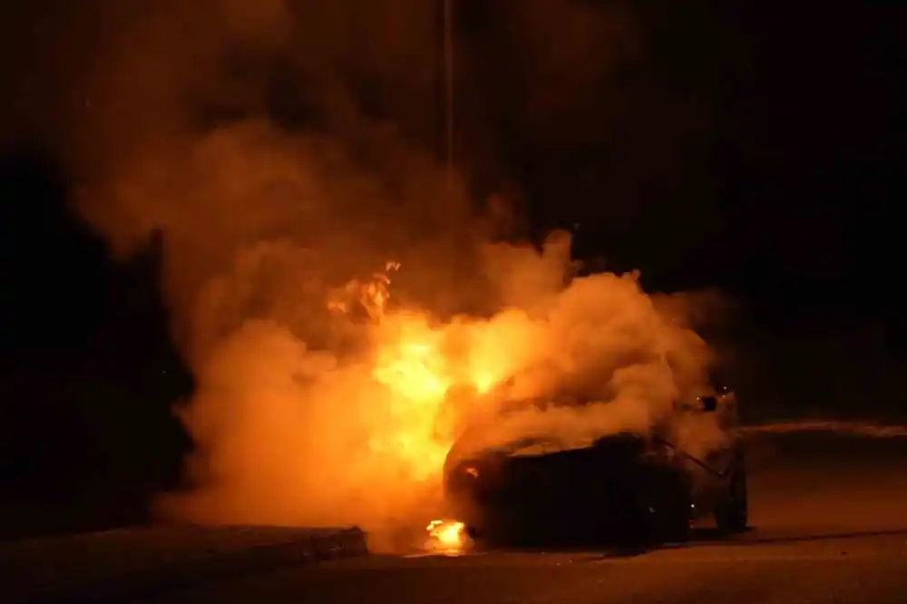 Bayram için yeğeninden emanet aldığı araç alev alev yandı