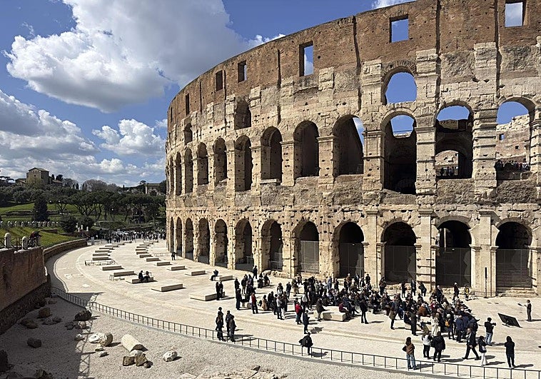 La recuperación de la plaza exterior con travertino original permite a los visitantes percibir las arcadas de 50 metros que desaparecieron hace siglos
