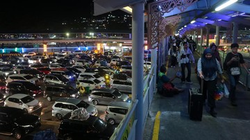 Meningkatnya volume kendaraan di Pelabuhan Merak pada masa puncak arus mudik lebaran 2026 membuat antrean kendaraan mengular.