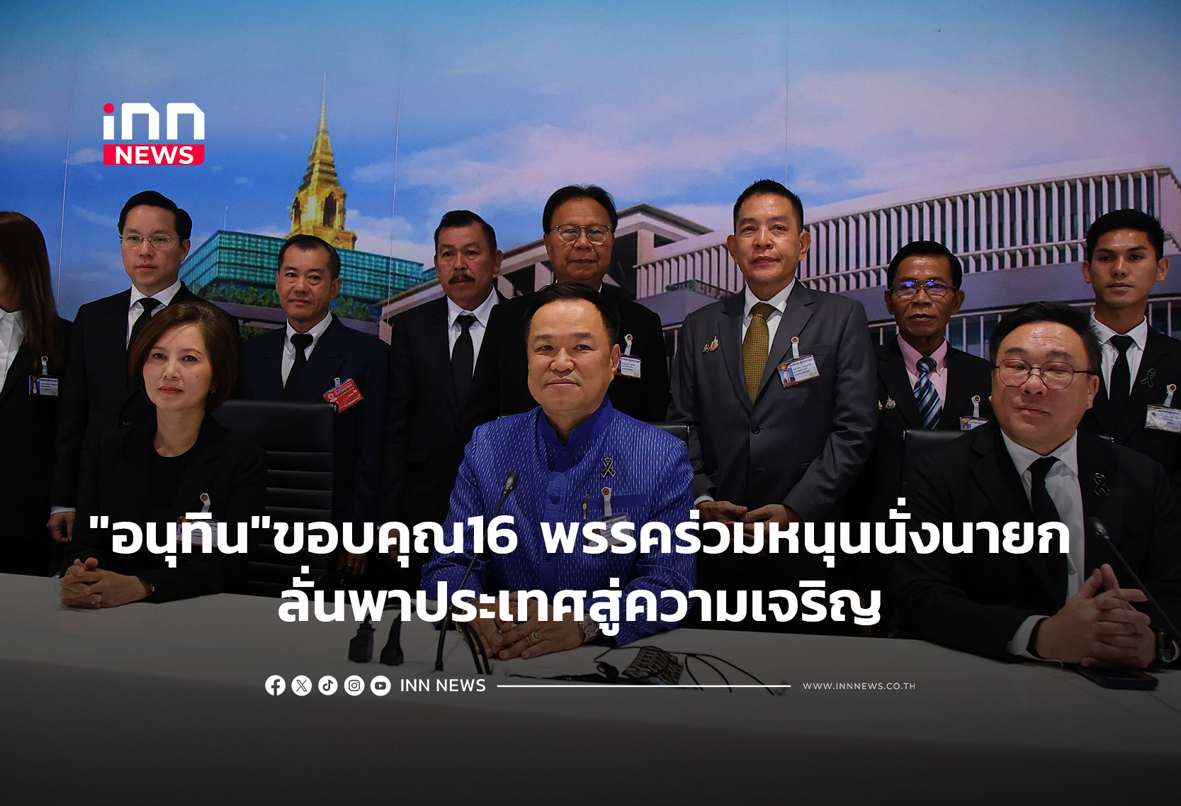 “อนุทิน” นำแถลงตั้งรัฐบาล ขอบคุณ 16 พรรคร่วมโหวตหนุนนั่งนายกฯ ประกาศไม่มีพรรคเล็ก – พรรคใหญ่ มีแต่พรรคร่วม ให้คำมั่นนำพาประเทศไปสู่ความเจริญ ด้าน “จุลพันธ์” คอนเฟิร์ม “เพื่อไทย” มาเต็ม 100 พร้อมยกมือสนับสนุน
