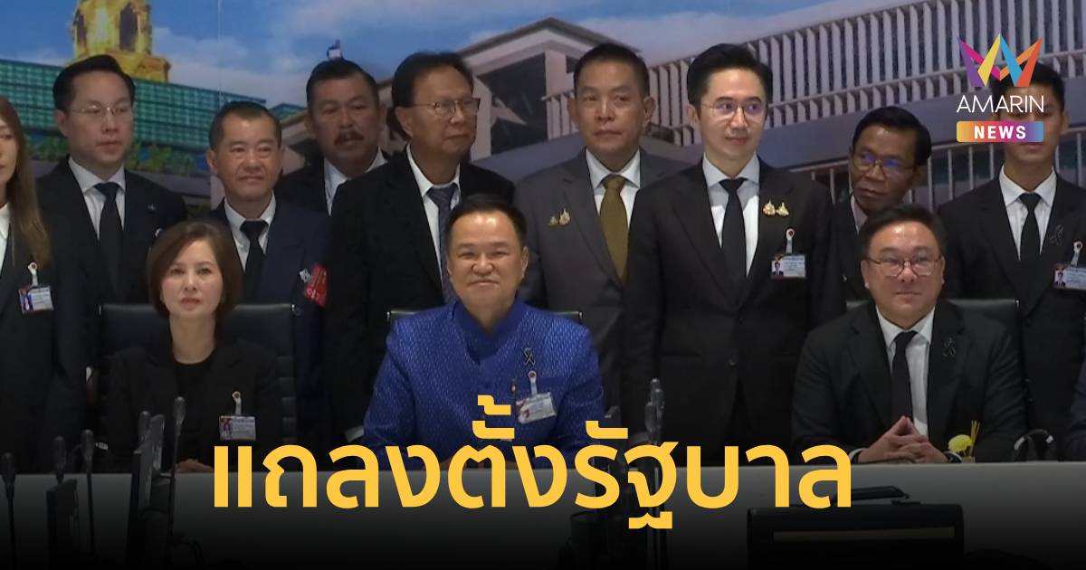 “อนุทิน” นำแถลงตั้งรัฐบาล ขอบคุณ 16 พรรคร่วมโหวตหนุนนั่งนายกฯ ประกาศไม่มีพรรคเล็ก - พรรคใหญ่ มีแต่พรรคร่วม ให้คำมั่นนำพาประเทศไปสู่ความเจริญ