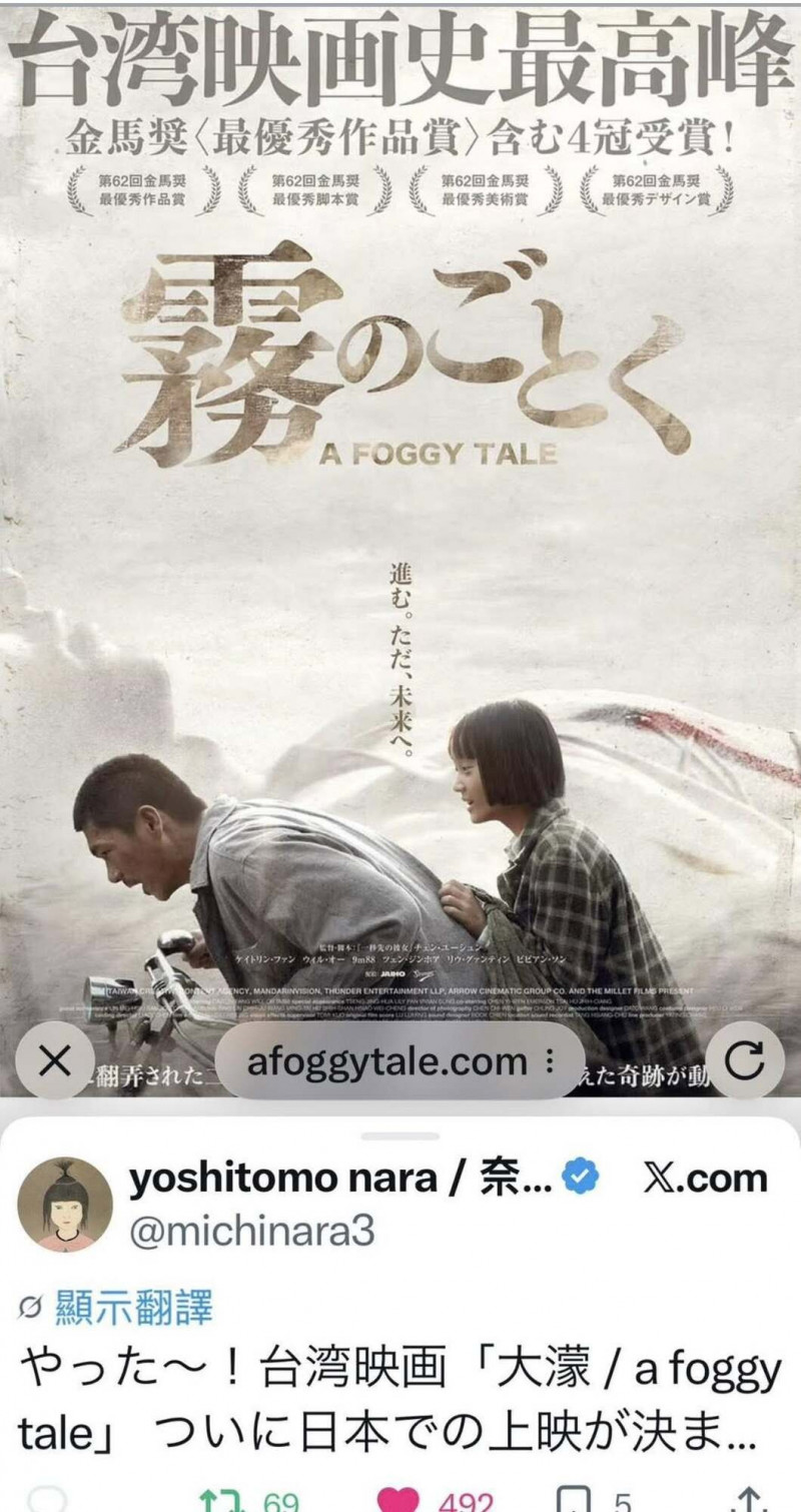由陳玉勳執導的電影《大濛》,即將在日本以《霧のごとく》之名正式上映。此項消息不僅令影迷振奮,連長期熱愛台灣的日本當代藝術大師奈良美智(Yoshitomo Nara),也特...…