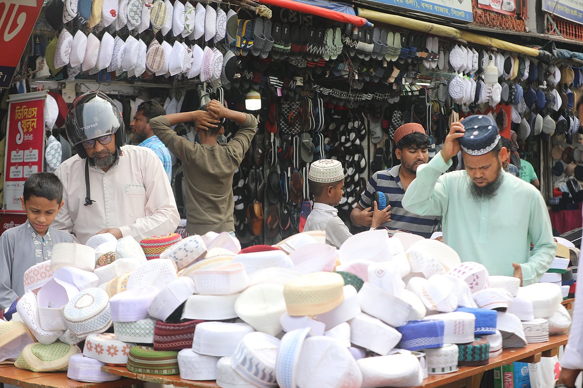পবিত্র ঈদুল ফিতর সামনে রেখে সিলেটে জমে উঠেছে টুপির বাজার। নগরের বিভিন্ন এলাকায় টুপির দোকানে ভিড় বাড়ছে ক্রেতাদের।