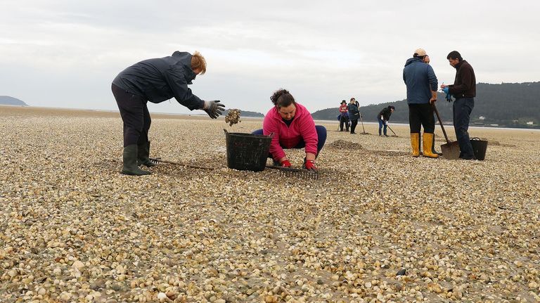 Mariscadores de a pie de Noia retiran otras 12 toneladas de bivalvo muerto