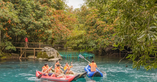Những chùm vàng anh đua nở dưới những tán rừng nguyên sinh ven dòng suối xanh biếc ở Phong Nha - Kẻ Bàng tạo nên bức tranh thủy mặc sống động đẹp đến nao lòng.