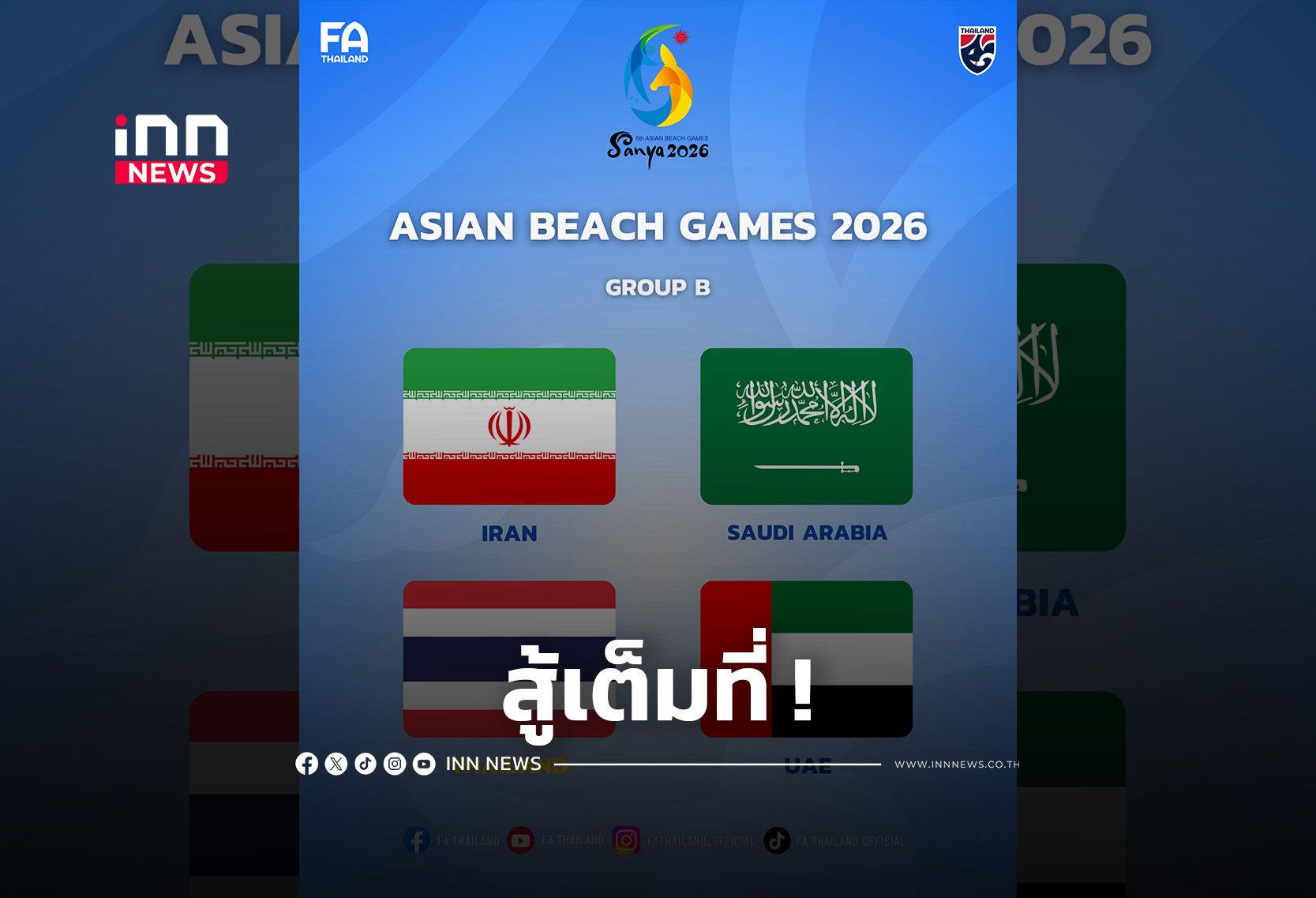 ฟุตบอลชายหาดทีมชาติไทย ร่วมสาย อิหร่าน, ยูเออี, ซาอุดีอาระเบีย ในมหกรรม เอเชียน บีช เกมส์ 2026