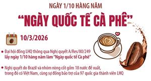 Đại hội đồng Liên hợp quốc (LHQ) ngày 10/3/2026 tại New York (Mỹ) đã thông qua Nghị quyết A/Res/80/249 lấy ngày 1/10 hàng năm làm “Ngày quốc tế Cà phê” nhằm nâng cao nhận thức của cộng đồng quốc tế về ý nghĩa kinh tế, xã hội và văn hóa của cà phê cũng như vai trò của ngành cà phê đối với phát triển bền vững.