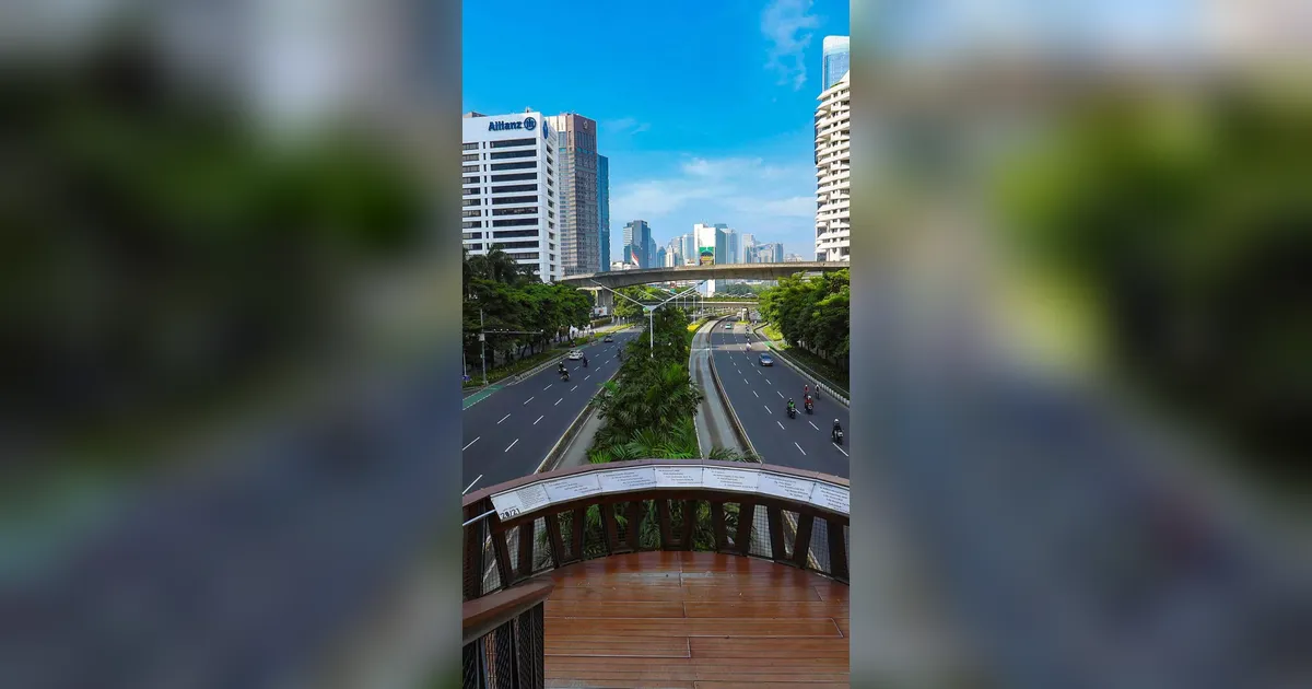 Jakarta tampak lengang di bawah langit biru seiring jutaan kendaraan meninggalkan ibu kota untuk mudik Lebaran, Kamis (19/03/2026).
