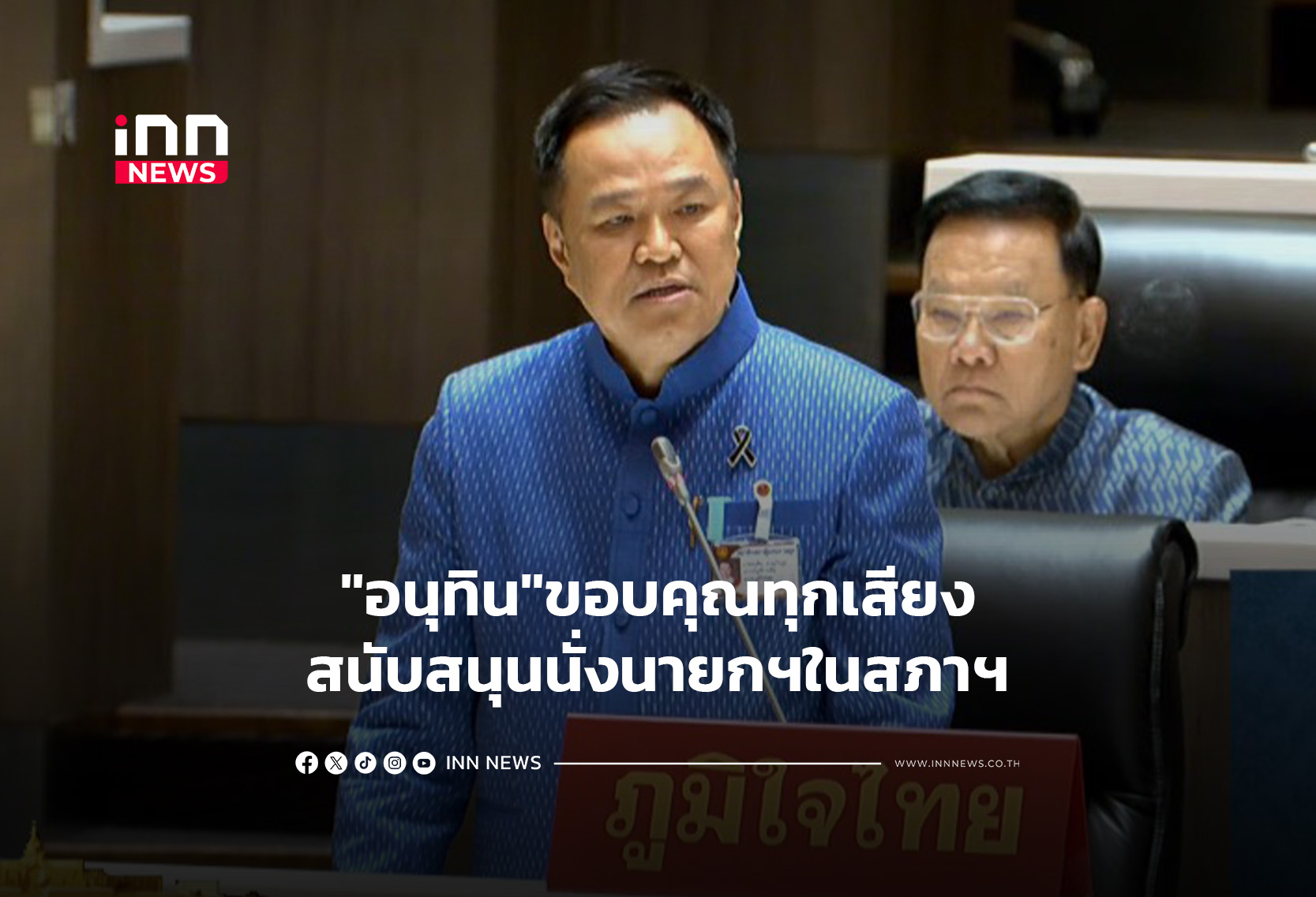 “อนุทิน”ขอบคุณทุกเสียงสนับสนุนนั่งนายกฯในสภาฯ ยืนยันยึดหลักย้ำพร้อมทำงานร่วมทุกพรรค รับฟังทุกความเห็น มุ่งประโยชน์สูงสุดของประชาชน พร้อมน้อมรับพระราชดำรัส ในหลวงมาทำงาน