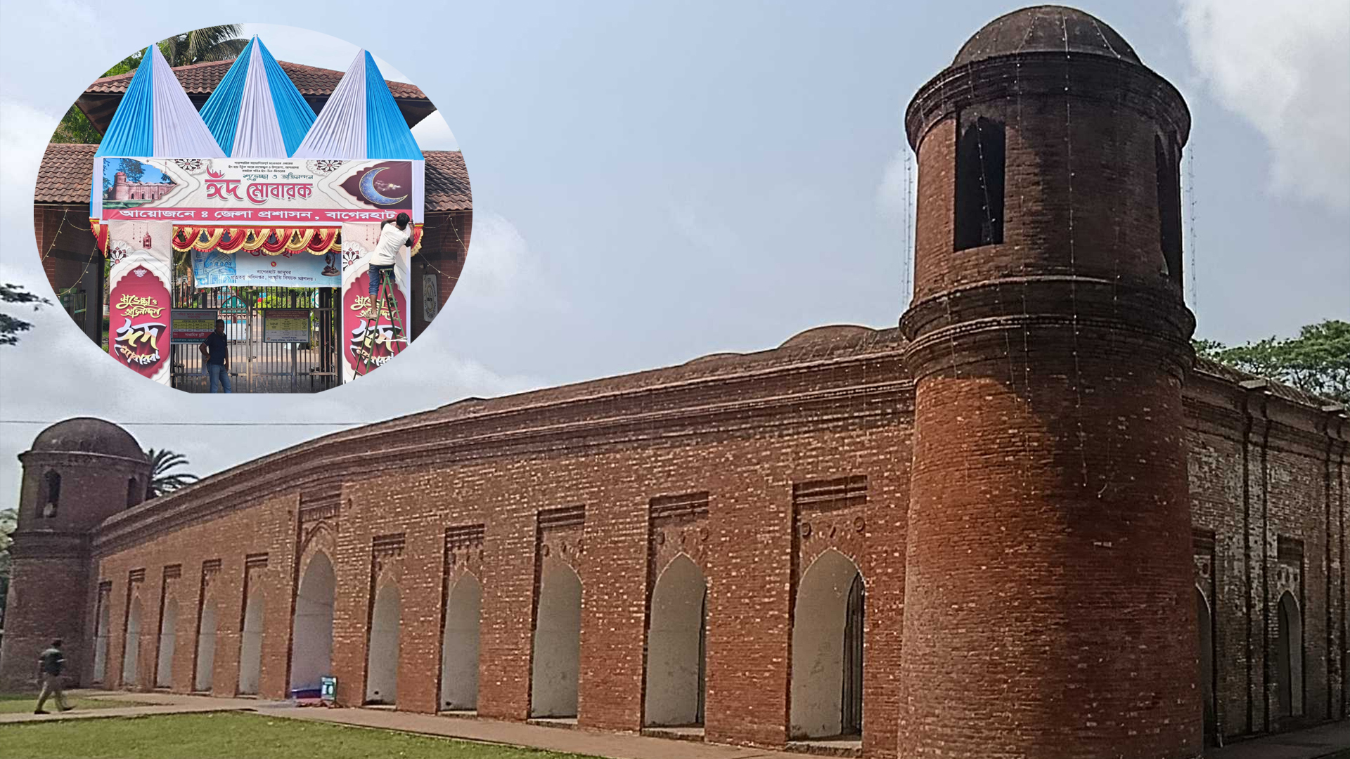 বাগেরহাটের ষাটগম্বুজ মসজিদে এবারও পর্যায়ক্রমে ঈদের তিনটি জামাত অনুষ্ঠিত হবে। এ উপলক্ষে সব ধরনের প্রস্তুতি সম্পন্ন করেছে জেলা প্রশাসন। দর্শনার্থীদের জন্য দৃষ্টিনন্দন আলোকসজ্জারও ব্যবস্থাও করা হয়েছে মসজিদ প্রাঙ্গণে।চাঁদ দেখার সাপেক্ষে শুক্র বা শনিবার (২০ বা ২১ মার্চ) দেশে মুসলমানদের সবচেয়ে বড় ধর্মীয় উৎসব ঈদুল ফিতর উদযাপিত হবে। ঈদুল ফিতরের তারিখ নির্ধারণে বৃহস্পতিবার (১৯ মার্চ) সভায় বসবে জাতীয় চাঁদ দেখা কমিটি।জানা যায়, মুসল্লিদের আধিক্যের কারণে ষাটগম্বুজ মসজিদে তিনটি জামাত অনুষ্ঠিত হবে। প্রথম জামাত অনুষ্ঠিত হবে সকাল সাড়ে ৭টায়। এতে ইমামতি করবেন খানজাহান (রহ.) মাজারসংলগ্ন মসজিদের খতিব হাফেজ মাওলানা মো. খালিদ। দ্বিতীয় জামাত শুরু হবে সকাল সোয়া ৮টায়। এতে ইমাম থাকবেন ষাটগম্বুজ মসজিদের ইমাম ও খতিব মো. নাসির উদ্দিন। তৃতীয় ও শেষ জামাত অনুষ্ঠিত হবে সকাল ৯টায়। এতে বায়তুশ শরফ এতিমখানার সুপারিন্টেন্ডেন্ট ও হাফেজ মাওলানা মো. এনামুল হক ইমামতি করবেন।আরও পড়ুন: শোলাকিয়ায় ৪ স্তরের নিরাপত্তা, ঈদের জামাত সকাল ১০টায়ঈদকে ঘিরে ইতোমধ্যে মসজিদ প্রাঙ্গণ ও আশপাশে নেয়া হয়েছে ব্যাপক পরিষ্কার-পরিচ্ছন্নতা কার্যক্রম। পাশাপাশি রঙিন আলোকসজ্জায় সজ্জিত করা হয়েছে পুরো এলাকা; যা রাতে সৃষ্টি করছে এক ভিন্ন আবহ।এ বিষয়ে বাগেরহাটের প্রত্নতত্ত্ব অধিদফতরের কাস্টোডিয়ান মো. যায়েদ বলেন, ‘বাগেরহাটে প্রধান ঈদের নামাজ ষাটগম্বুজ মসজিদে অনুষ্ঠিত হবে। এবারও তিনটি জামাত অনুষ্ঠিত হবে। তিন জামাতে মোট ছয় হাজার মুসল্লি নামাজ আদায় করবেন এখানে। মসজিদের ভেতরে একসঙ্গে দেড় হাজার ও বাইরে পাঁচ শতাধিক মানুষের নামাজের ব্যবস্থা থাকবে।’