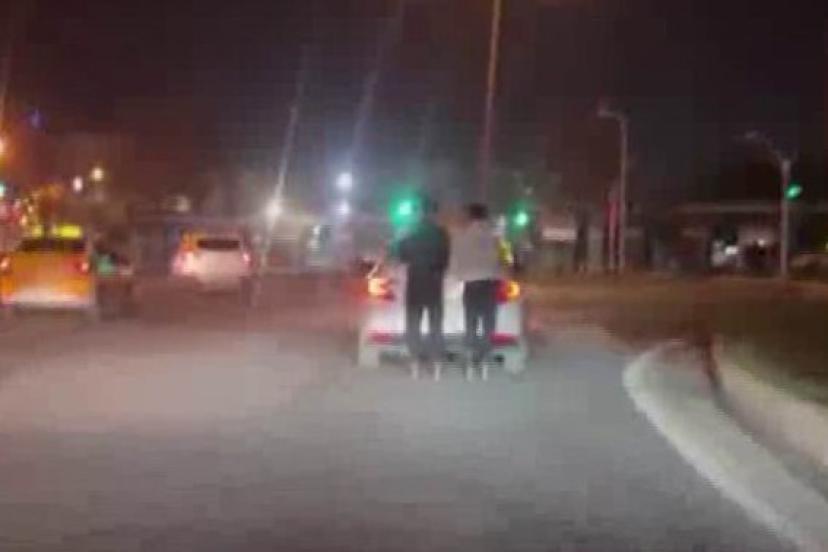 Diyarbakır’da patenli iki gencin araç arkasında tutunarak ilerlediği anlar kameraya yansıdı.
