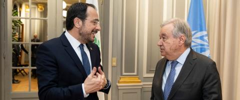 Τα επόμενα βήματα στο Κυπριακό συζητήθηκαν κατά τη συνάντηση που είχαν το βράδυ της Τετάρτης, στις Βρυξέλλες ο ΓΓ του ΟΗΕ Αντόνιο Γκουτέρες και ο Πρόεδρος της Δημοκρατίας Νίκος Χριστοδουλίδης, σύμφωνα με τον ΟΗΕ. Ανακοίνωση των Ηνωμένων Εθνών αναφέρει ότι «ο ΓΓ του διεθνούς οργανισμού Αντόνιο Γκουτέρες συναντήθηκε στις Βρυξέλλες με τον Πρόεδρο της Κυπριακής Δημοκρατίας και ηγέτη της ελληνοκυπριακής κοινότητας Νίκο Χριστοδουλίδη». «Κατά τη συνάντηση συζητήθηκε η πορεία των επόμενων βημάτων στο Κυπριακό, καθώς και η κατάσταση στη Mέση Ανατολή» προστίθεται. Πηγή: ΚΥΠΕ ΔΙΑΒΑΣΤΕ ΕΔΩ: Έχει πλάνο για το Κυπριακό ο Γκουτέρες-Βούληση για πρόοδο πριν από τη λήξη της θητείας του και μεθοδολογία προεργασίας για άτυπη διευρυμένη