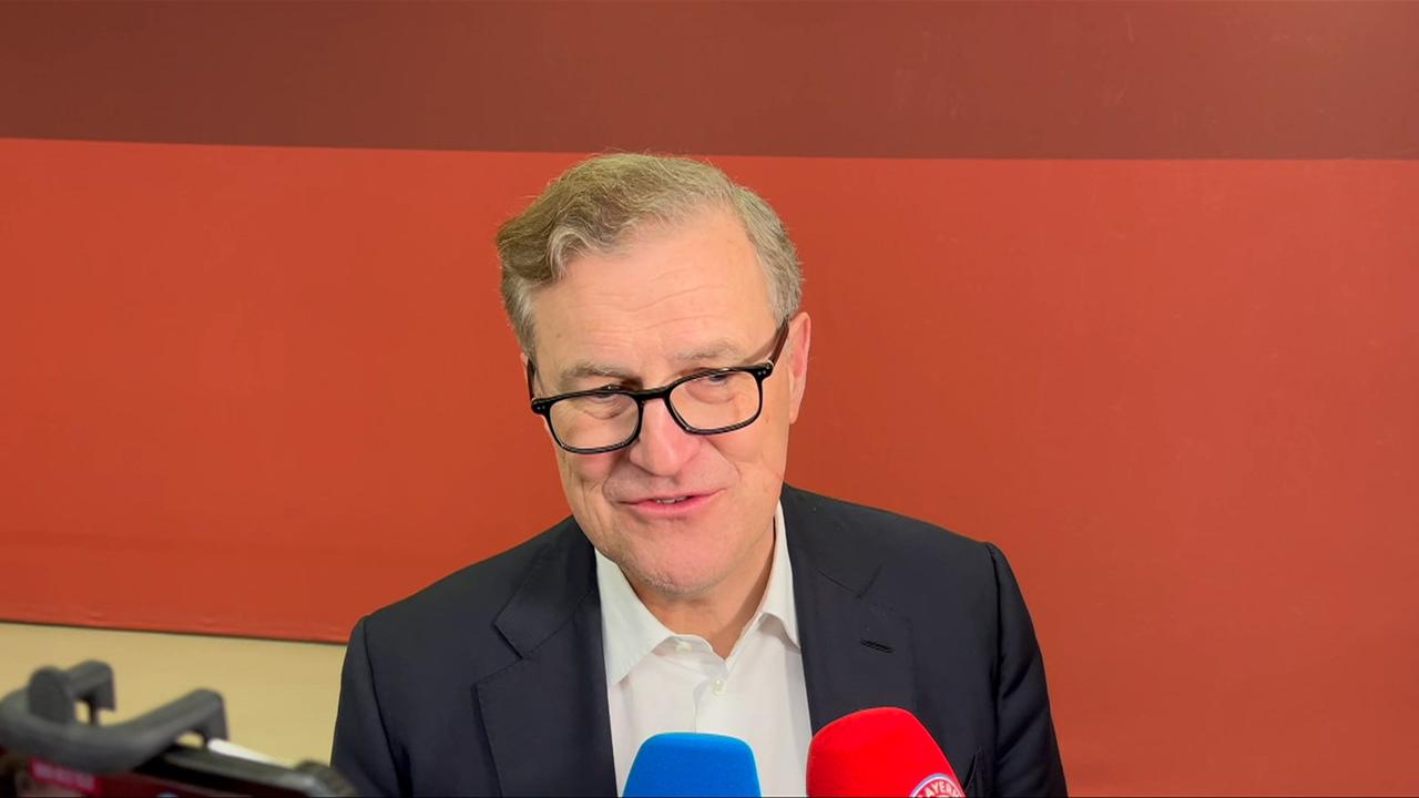 Bayern Münchens Vorstandsvorsitzender Jan-Christian Dreesen spricht nach dem Champions League Achtelfinale gegen Atalanta über die möglichen DFB-Nominierungen von Lennart Karl und Jonas Urbig.
