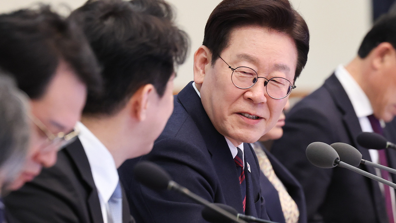 ▲ 이재명 대통령이 19일 청와대에서 열린 수석보좌관회의에서 강훈식 대통령비서실장과 대화하고 있다.이재명 대통령이 "지역 문화…