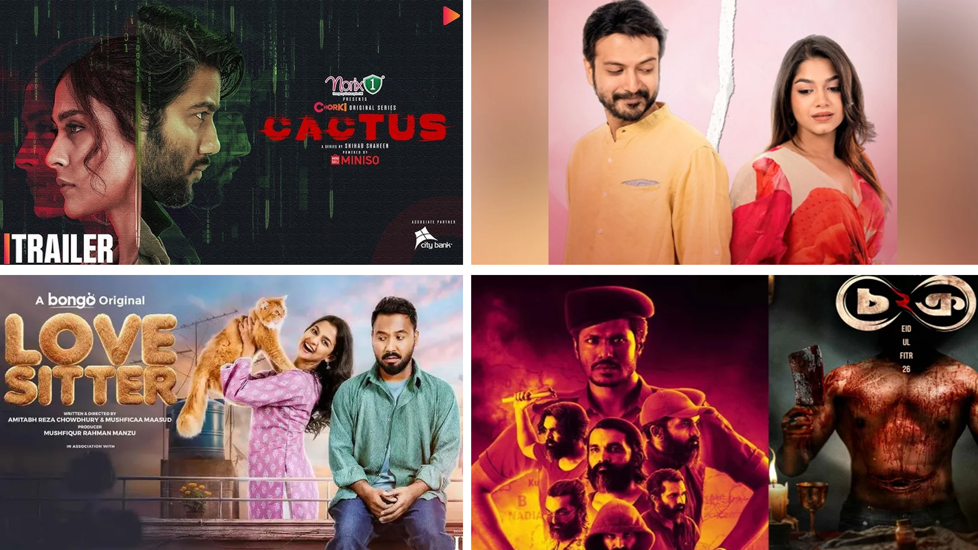 এবারের ঈদুল ফিতরে শোবিজ অঙ্গনজুড়ে থাকবে বাক্সভরা ঈদ আনন্দ। প্রেক্ষাগৃহে মুক্তি পাবে দারুণ সব গল্পের ৫টি সিনেমা। এই ধারাবাহিকতায় পিছিয়ে নেই স্ট্রিমিং প্ল্যাটফর্মগুলোও। ঈদকে কেন্দ্র করে ওটিটিতে মুক্তি পাচ্ছে সিনেমা এবং ওয়েব সিরিজ।ক্যাকটাস, চরকি: চরকি অরিজিনাল সিরিজ ক্যাকটাস নির্মাণ করেছেন নির্মাতা শিহাব শাহীন। মানসিভ নামের এক সাধারণ তরুণের হ্যাকার হয়ে ওঠার গল্প পর্দায় তুলে ধরা হয়েছে। চরিত্রটিতে অভিনয় করেছেন প্রীতম হাসান, তার বিপরীতে আছেন মেহজাবীন চৌধুরী। স্পাই-থ্রিলার সিরিজটি গতকাল বুধবার (১৮ মার্চ) মুক্তি পেয়েছে। আরও পড়ুন: ঈদে মুক্তির তালিকা থেকে বাদ পড়ল বুবলীর ‘পিনিক’একসাথে আলাদা, হইচই: কখনো কখনো দুজন মানুষ একই ছাদের নিচে থেকেও দূরে সরে যায়—এমনই এক সম্পর্কের গল্পে হইচইয়ের সিনেমা একসাথে আলাদা নির্মাণ করেছেন রেজাউর রহমান। এতে জুটি বেঁধেছেন ইয়াশ রোহান ও পারসা ইভানা। এটিও মুক্তি পেয়েছে।লাভ সিটার, বঙ্গ: সাদিয়া আয়মান ও জিয়াউল পলাশ জুটিকে নিয়ে লাভ সিটার নির্মাণ করেছেন অমিতাভ রেজা চৌধুরী ও মুশফিকা মাসুদ। এক বিড়াল আর দুই মানুষের অদ্ভুত মায়ার গল্পে নির্মিত ফিকশনটির চিত্রনাট্যও লিখেছেন এই দম্পতি। ফিকশনটি ঈদের তৃতীয় দিন বঙ্গতে মুক্তি পাবে। এর বাইরে বঙ্গ অরিজিনাল জ্যাকপট, মিস্ট্রি থ্রিলার লিলিসহ বেশ কয়েকটি কনটেন্ট মুক্তি দেবে প্ল্যাটফর্মটি। আরও পড়ুন: ঈদ ধামাকা: একযোগে মুক্তি পাচ্ছে শাকিবের ‘প্রিন্স’সহ পাঁচ সিনেমা‘চক্র ২’: আইস্ক্রিন অরিজিনাল সিরিজ ‘চক্র ২’ নির্মাণ করেছেন নির্মাতা ভিকি জাহেদ। অন্ধকারে লুকানো সত্য, খুনের ছায়া রহস্যের জট নিয়ে নির্মিত সাইকোলজিক্যাল থ্রিলারটি ঈদে মুক্তি পাচ্ছে। ৮ পর্বের এই সিরিজে তৌসিফ মাহবুব, বাঁধনসহ অনেকে অভিনয় করেছেন। এর বাইরে ‘সিক্স’ নামে আরেক ওয়েব সিরিজ মুক্তি দেবে প্ল্যাটফর্মটি। তানিম পারভেজ পরিচালিত সিরিজটিতে অভিনয় করেছেন ইফতেখার ফাহমি, আরশ খান ও সাদিয়া ইসলাম মৌ।