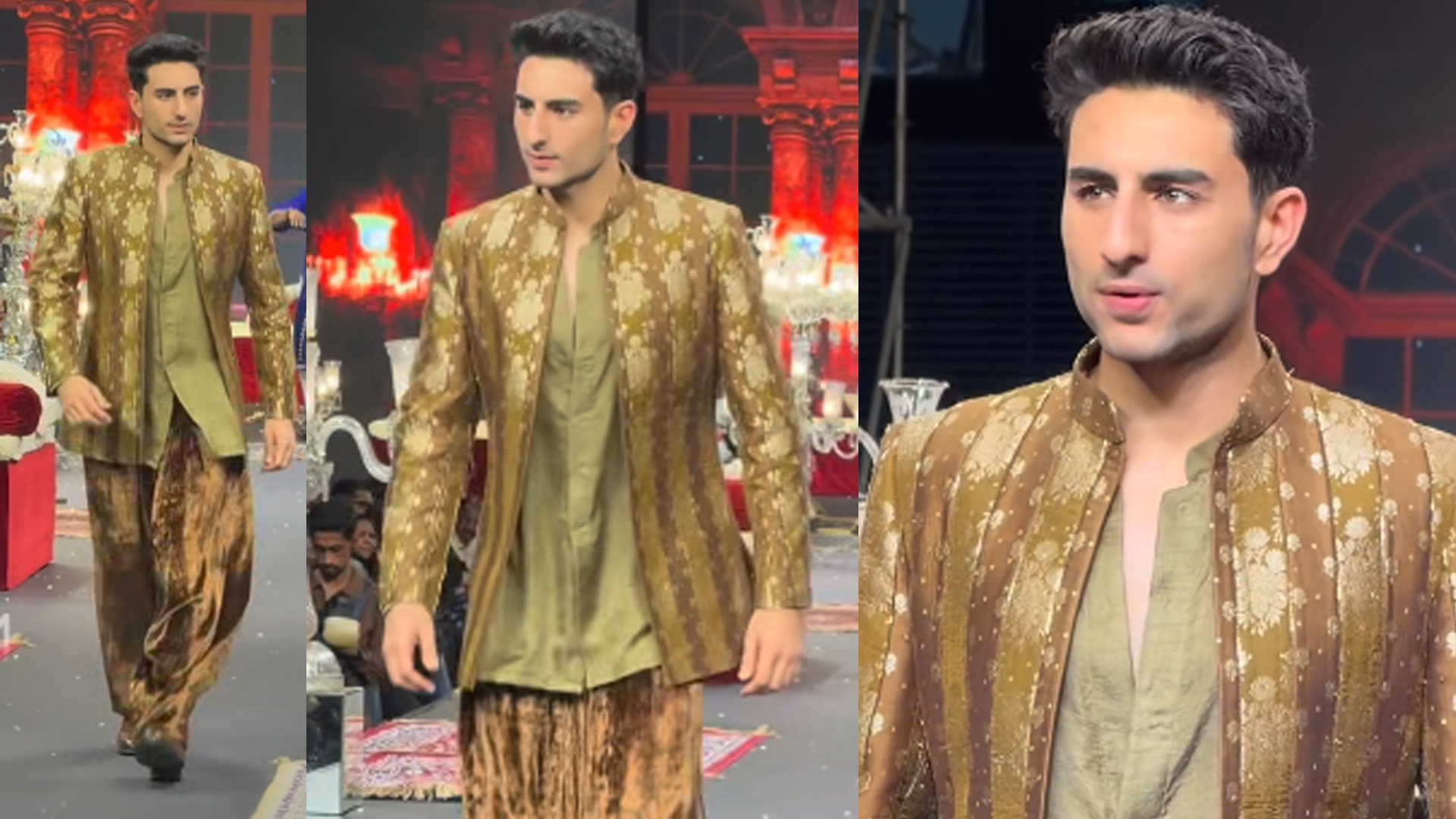সামাজিক যোগাযোগ মাধ্যমে সম্প্রতি ভাইরাল হয়েছে বলিউড অভিনেতা সাইফ আলি খানের পুত্র ইব্রাহিম আলি খানের একটি ভিডিও। ভিডিওতে দেখা যাচ্ছে, সোনালি রঙের পোশাকে র্যাম্পে রাজকীয় আবেশে হাঁটছেন তিনি।ভারতীয় সংবাদমাধ্যম জুম টিভির প্রতিবেদন থেকে জানা যায়, সম্প্রতি একটি অনুষ্ঠানে র্যাম্পে হাঁটেন ইব্রাহিম। সোনালি রঙের কুর্তি পোশাক আর অলিভ রঙের ফতুয়াতে নজর কাড়েন নবাব পরিবারের সদস্য। নেটদুনিয়ায় এ মুহূর্তের ভিডিও দ্রুতই ভাইরাল হয়। এখন পর্যন্ত ভিডিওটির ভিউ সংখ্যা ছাড়িয়েছে ১ মিলিয়নেরও বেশি। নেটিজেনরা বলছেন, র্যাম্পে হাঁটার ধরনে ইব্রাহিমের রাজকীয় ভাব ও নবাবি স্টাইল স্পষ্ট। যা হৃদয় ছুঁয়েছে ভক্তদের। আরও পড়ুন: আহত অভিনেতা বিক্রম এখন পর্যন্ত অবশ্য বলিউড দুনিয়ায় পা রাখেননি ইব্রাহিম। যেখানে বাবা-মার পদাঙ্ক অনুসরণ করে বড় বোন সারা আলি খান বলিউডের জনপ্রিয় নায়িকা হয়ে উঠেছেন সেখানে পড়াশুনা নিয়ে ব্যস্ত সময় পার করছেন পাতৌদির এ নবাবপুত্র। তবে বলিউডে পা না রাখলেও সোশ্যাল মিডিয়ায় তার রয়েছে অসংখ্য ভক্ত। আরও পড়ুন: বিতর্কিত গান নিয়ে যা বললেন আরমান মালিক