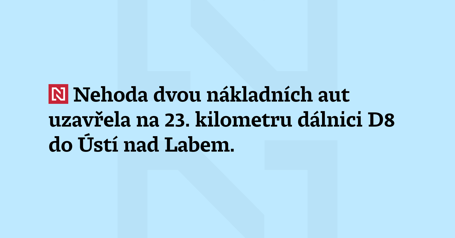 Nehoda dvou nákladních aut uzavřela na 23. kilometru dálnici D8 do Ústí nad Labem. Dálnice je neprůjezdná mezi exity 18 a 29, uvedlo dopravní centrum. (Policie ČR)
