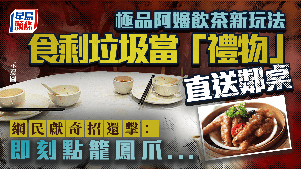 有網民分享與家人飲茶時,遇到鄰桌一位極品大嬸,做出缺乏公德心的行為,其理直氣壯的態度更是引爆網民怒火。 極品阿嬸飲茶新玩法!食剩垃圾當「禮物」直送鄰桌 網民奇招還擊:即刻點籠鳳爪...↓↓↓↓ 有網民在社交平台發帖表示,早前與家人正在酒樓用餐時,部分家人先行離去,枱上仍有食物,此時,鄰桌一位大嬸突然將自己枱上一杯不要的茶,逕自放到樓主的餐桌上,這份突如其來的「禮物」讓樓主非常詫異。 從樓主上載該大