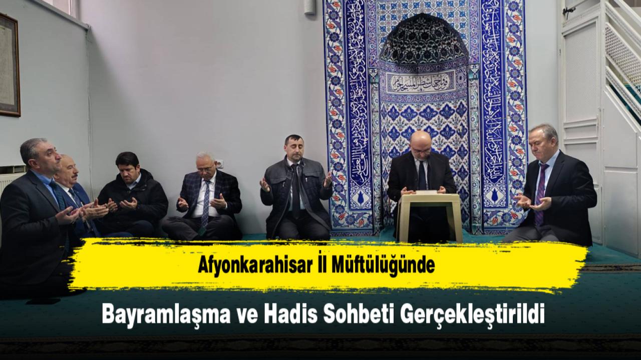 Afyonkarahisar İl Müftülüğü bünyesinde düzenlenen programda İl Müftüsü Lütfü İmamoğlu tarafından hadis sohbeti yapıldı, ardından personelle bayramlaşma gerçekleştirildi.