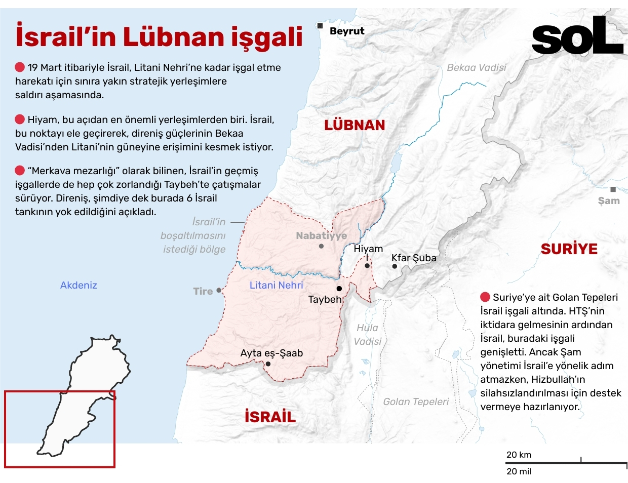 İsrail, Lübnan'a yönelik kara saldırısının ilk aşamasında. Sınır boyundaki kritik yerleşimlere yönelik başlatılan "sınırlı kara operasyonu" tamamlandıktan sonra, çok sayıda taburun katılımıyla kara işgalinin başlaması hedefleniyor. Ancak "sınır kara operasyonu" dahi, ilk andan itibaren direnişle karşılaştı. Hizbullah, Hiyam, Ayta eş-Şaab gibi birçok yerleşimde İsrail ordusuyla çatışmaya girdi. Örgütün açıklamasına göre, coğrafi konumu nedeniyle 2006 yılındaki işgalde İsrail'in çok sayıda tank kaybettiği ve bu sebeple "Merkava mezarlığı" olarak bilinen Taybeh'te direniş güçleri şimdiye dek 6 israil tankını hedef aldı. İsrail devleti, kayıplarına dair verilere mutlak sansür uyguluyor. Ancak İsrail basını, 18 Mart'ı 19 Mart'a bağlayan gece yaşanan çatışmaların "tedirgin edici sonuçlar yarattığını" aktarıyor. Peki, İsrail tam olarak ne amaçlıyor? Askeri hamlelerinin siyasi hedefleri ne? Durum Lübnan siyasetine nasıl yansıyor? İsrail'in tarihi emeli: Litani Nehri Litani Nehri, yirmi yıldır kağıt üstünde en önemli sınır. 2006’da İsrail için hüsranla biten işgali bitiren 1701 Sayılı BM Kararı, Lübnan’ın nehrin güneyinde kalan, İsrail sınırına kadar olan bölgede yalnızca Lübnan ordusu ve BM’ye bağlı UNIFIL kuvvetlerinin kalmasını öngörüyordu. Ancak ne İsrail bu bölgeyi taciz etmeyi bıraktı, ne de Hizbullah ve diğer direniş güçleri, olası bir işgale karşı burada konuşlanmaktan vazgeçti. 2024’te İsrail’in Lübnan’ı işgalini bitiren son ateşkes de bu bölgeden hem İsrail hem direnişin çekilmesini, ayrıca Hizbullah’ın silahsızlandırılmasını öngörüyordu. İsrail, ateşkesi hiç önemsemedi. 5 stratejik tepeden çekilmedi. UNIFIL raporlarına göre bu kısa sürede Lübnan hava sahasını tam 10 bin kez ihlal etti, Lübnan topraklarında 1400 askeri operasyon yürüttü. Hizbullah da Güney Lübnan’ı terk etmedi. Aksine, 2 Mart’tan bu yana ortaya koyduğu askeri performans, 2024’te “kolu kanadı kırıldı” değerlendirmesi yapan İsrailli ve diğer yabancı gözlemcileri şaşırtacak derecede büyük bir dirence sahip olduğunu gösterdi. İsrail ordusuna ait çok sayıda askeri araç ve tankların İsrail'in kuzeyinde Lübnan sınırına yakın bölgede konuşlandığı görüldü. (Fotoğraf: AA) Bu hafta başlayan kara harekatıyla birlikte İsrail, bu kez bir savaştan ziyade yıkımı ve uzun vadeli işgali hedefliyor. İsrail, önce Litani’ye kadar olan bölgenin boşaltılmasını istedi. Ardından, bu talebini hem nehrin kuzeyini hem de Beyrut’un Dahiye semtini içerecek ve Lübnan topraklarının yüzde 14’üne tekabül edecek şekilde genişletti. İsrail Maliye Bakanı Bezalel Smotrich, 5 Mart’ta yaptığı açıklamada, Gazze’yi buldozerlerle yerle bir etmelerine atıfla “Dahiye, Han Yunus gibi görünecek” dedi. Beyrut’taki Dahiye’ye İsrail’in karadan ulaşması olanaksız. Ancak siyonistler, büyük oranda Şiilerin yaşadığı bu mahalleleri sürekli olarak havadan vuruyor. Ancak “Gazze benzeri yıkım” planı, esas Litani’nin güneyindeki bölge için geçerli. İsrail, burayı tamamen nüfustan arındırılmış ve yerle bir edilmiş, boş bir alan haline getirmeyi hedefliyor. Siyonistler şimdiden sınıra yakın bazı Lübnan köylerini tek bir ev kalmayacak şekilde yıktı. Amaç, asırlardır burada yaşayan Lübnanlıların bir daha geri dönememesini sağlamak ve böylece Lübnan’ın fiziki ve demografik haritasını tamamen değiştirmek. İsrail ordusu, burada bir tampon bölge kurmak istiyor. Kimi raporlar hedef olarak 10 kilometrelik bir şeride işaret etse de, esas arzulanan Litani Nehri’ne kadar İsrail’in kontrol ettiği, insansız bir alan yaratmak. Litani takıntısının sebebi ne? Litani Nehri’ne dayanma arzusunun çeşitli sebepleri var. Askeri olarak nehir, ötesinin gözlemlenebileceği, kolay savunulabilir ve sızmaları zorlaştıracak bir sınır olarak görülüyor. Nehir, İsrail sınırına yaklaşık 30 kilometre mesafede. Bu mesafenin, İsrail’in kuzeyini kısa menzilli roketlerden koruyacağı düşünülüyor. Ayrıca nehre dayanacak İsrail güçlerinin, çoğunluğu nehrin kuzeyinde yer alan füze atış rampalarına ve Hizbullah tahkimat noktalarına operasyon düzenleme olanağı sağlayacağı da hesaplanıyor. Ancak Litani takıntısı, yalnızca askeri gerekçelerle ilgili değil. Suyun en değerli stratejik kaynaklardan biri olduğu coğrafyada İsrail, Litani Nehri’nin kontrolünü ele geçirmesi halinde su kaynaklarını yüzde 40 oranında artırmış olacak. İsrail'in Lübnan'ın güney düzenlediği yoğun saldırılar, bölgede ağır yıkıma neden oldu. Lübnan köylerinde oluşan yıkım İsrail'in kuzey bölgesinden görüntülendi. (Fotoğraf: AA) İşin bir de teolojiyle ve psikolojiyle kesişen politik boyutu var. “Vadedilmiş topraklar” elbette Litani’nin çok ötesini kapsıyor, fakat siyonist hareketin 1900’lerin başındaki ilk çalışmalarından itibaren Litani Nehri hep kuzey sınırı olarak belirlendi. 1947’de İsrail’in ilk lideri olan David Ben-Gurion da Litani Nehri’ne kadar genişleme hedefini hep dillendirdi. Psikolojik olaraksa Litani, İsrail için bir hınç ve ihtiras nesnesi. On yıllardır defalarca Lübnan’a saldırmış ve uzun yıllar ülkeyi işgal etmiş olan siyonistler, bir türlü Litani Nehri’ni tümüyle ele geçirmeyi başaramadı. 2006’daki işgal girişiminde İsrail ordusu nehri ancak uzaktan görebildi, suya dokunamadan yenildi ve gerisin geri çekildi. 1947’de siyonistlerin ilk saldırılarından başlayarak Güney Lübnan, özellikle de nehrin güney kısmında yaşayan insanlar bu işgale direndi. Bölgede on yıllara uzanan, yaşamın her zerresine yerleşmiş bir direniş kültürü var . 1960’larda Lübnan Komünist Partisi, buradaki köylerde mil