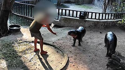 Für ein Foto! Mann steigt in Gehege von Zwergflusspferd Moo Deng